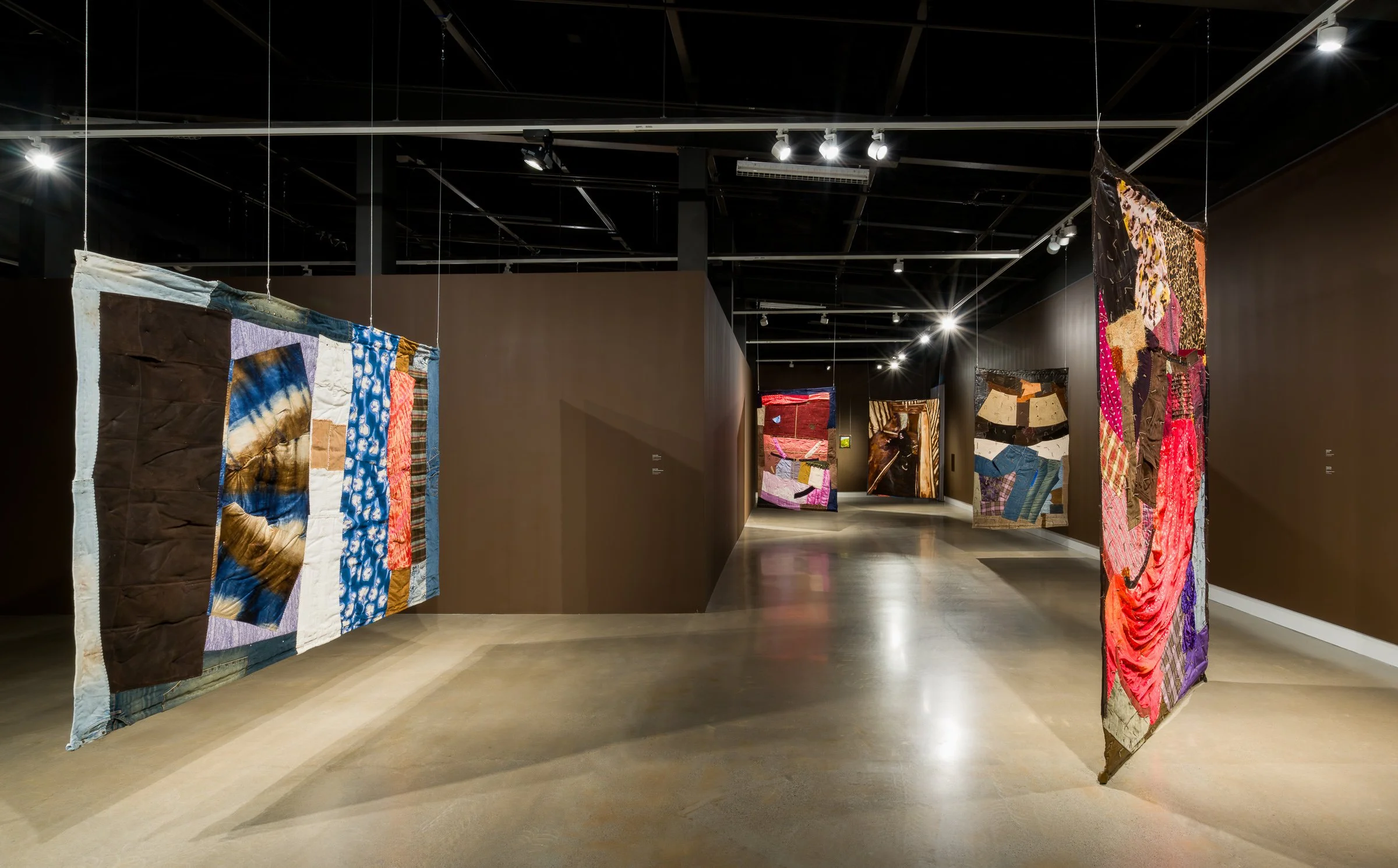 The works themselves reflect a duality—between image and object, distance and intimacy. Painted on one side and quilted on the other, they remain suspended between two modes of attention: the painterly, which invites contemplation from afar, and the tactile, which draws the viewer close. The painted compositions are richly textured, while the quilted side is stitched from worn pieces of clothing, each bearing traces of touch and use. What’s soft becomes structural; what’s discarded is made part of a new whole.